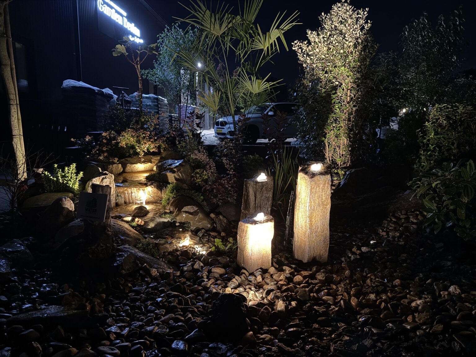 - Met verlichting ziet jouw vijver er weer compleet anders uit dan overdag.