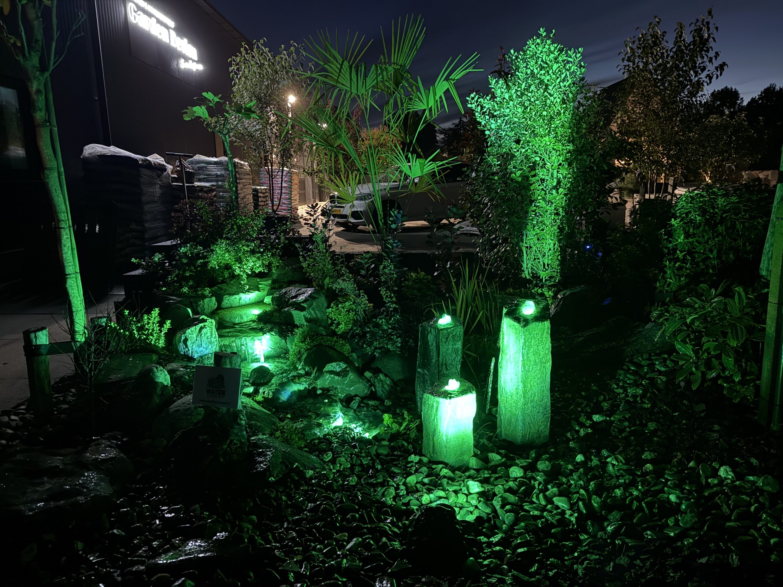 Om s’avonds te kunnen genieten van de blikvanger in jouw tuin maken wij gebruik van hoogwaardige kwaliteit verlichting die vanaf je telefoon te bedienen is. Hierdoor heb je weer een compleet ander plaatje en kan je ook in de avond van het water in jouw tuin genieten.